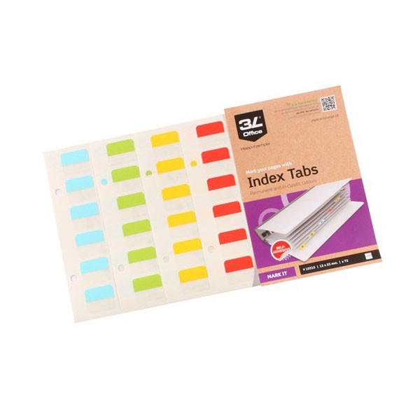 3L B10510 Index Tabs 25mm 72 Tabs Assorted