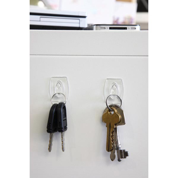 Easy to apply hooks and clips hold firmly to walls and doors until you want to take them down