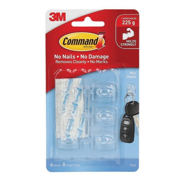 3M 17006CLR Command Adhesive Hook Mini Clear Pack 6