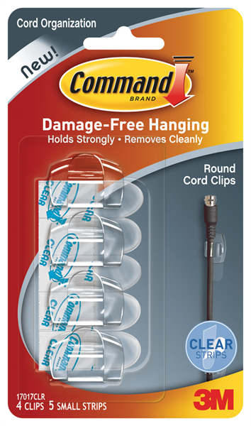3M 17017CLR Command Cord Clips Small Clear Pack 4