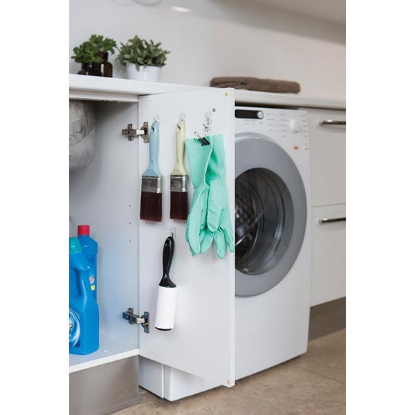 Easy to apply hooks and clips hold firmly to walls and doors until you want to take them down