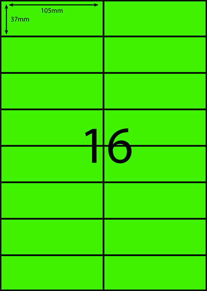 A4/16FG Fluoro Green Laser Labels 105 x 37mm 16 Per Sheet Pack 100