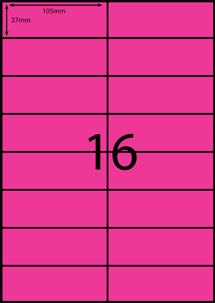 A4/16FP Fluoro Pink Laser Labels 105 x 37mm 16 Per Sheet Pack 100