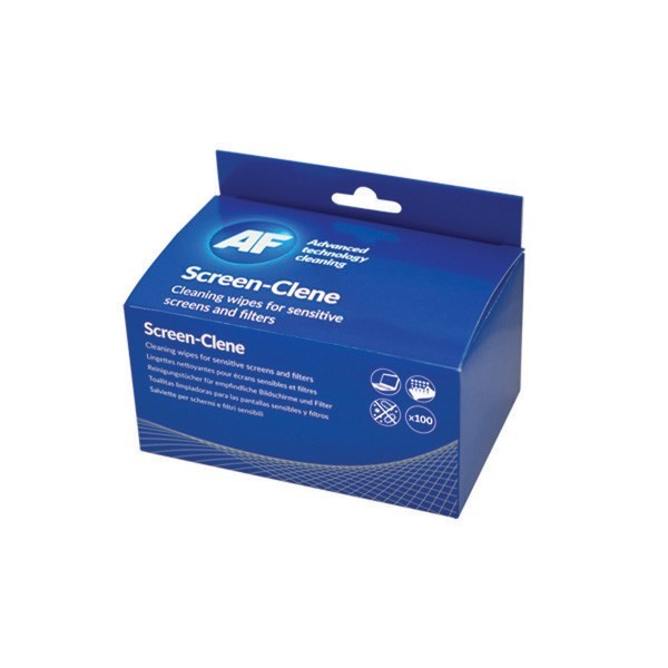 Handy box of 100 screen cleaning wipes impregnated with a gentle 'non smear' alcohol free solution