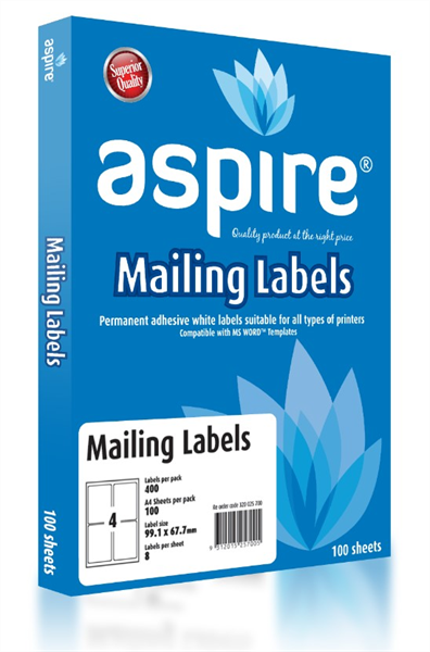 Aspire Address Labels Laser Inkjet 99.1 x 139mm 4 Per Sheet Pack 100