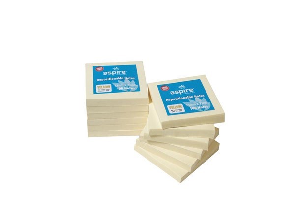 Aspire repositionable notes are reliable, self-stick, yellow notes