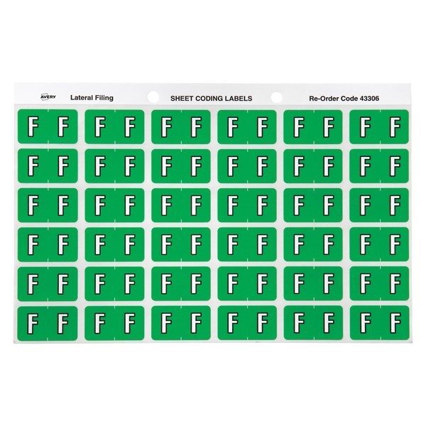 Avery 43306 F Side Tab Colour Coding Labels Light Green Pack 180