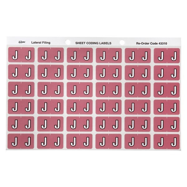 Avery 43310 J Side Tab Colour Coding Labels Mauve Pack 180