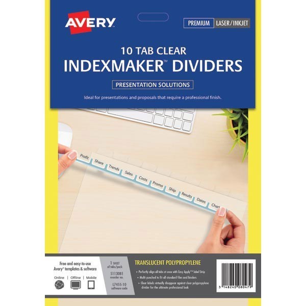 Give your indexing a professionally printed look! Create your own customised indexes with free, easy to use software available at averyproducts.com.au/print