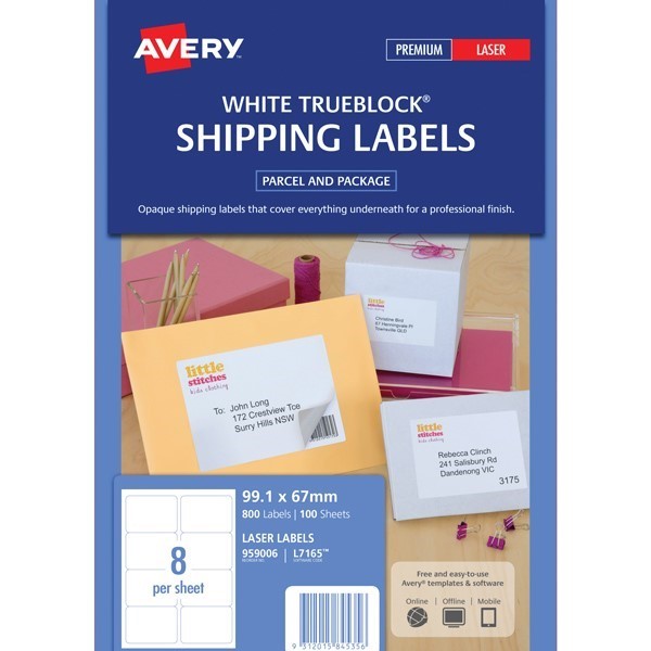 Avery 959006 L7165 Shipping Labels with Trueblock Laser 99.1 x 67.7mm 8 Per Sheet Pack 100