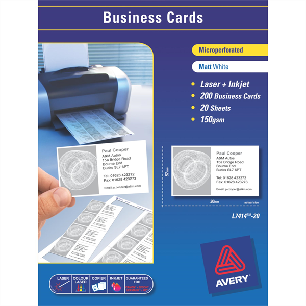 Avery 959025 Business Cards 10 per sheet L7414-20 White Pack 20
