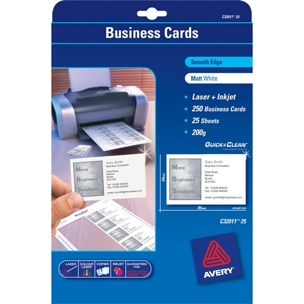 Avery 959078 Business Cards 10 per sheet C32011 Matt White Pack 25