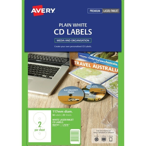 Avery 960101 L7676 CD Labels Laser 2 Per Sheet Pack 25