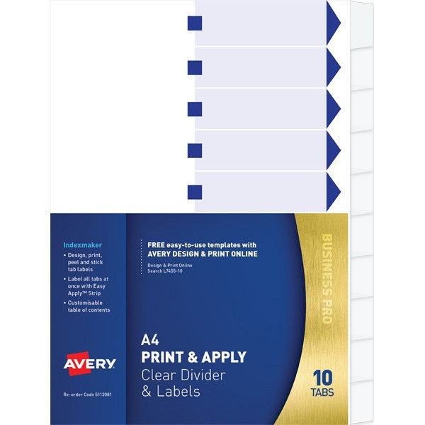 Avery Indexmaker 930113 A4 10 Tab White Punched (Set / Ctn10)