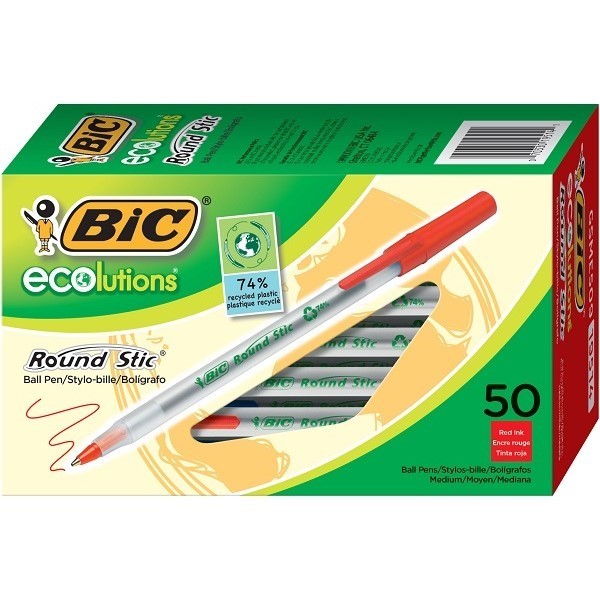 BIC Ecolutions Round Stic Ballpoint Pen Medium Red Box 50