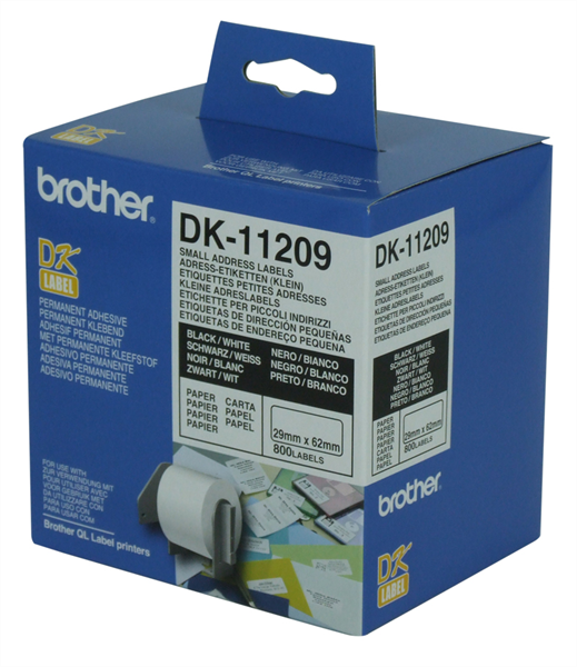 Brother DK-11209 Small Address Labels 29mm x 62mm Black on White