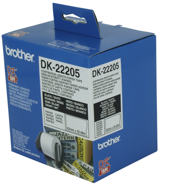 Brother DK-22205 White Continuous Paper Roll 62mm x 30.48m