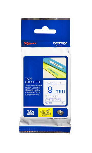 Brother TZE-223 P-Touch Tape Blue on White 9mm