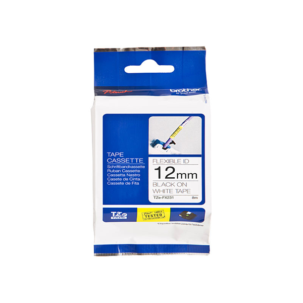 Brother TZE-FX231 P-Touch Tape Black on White 12mm Flexible Tape