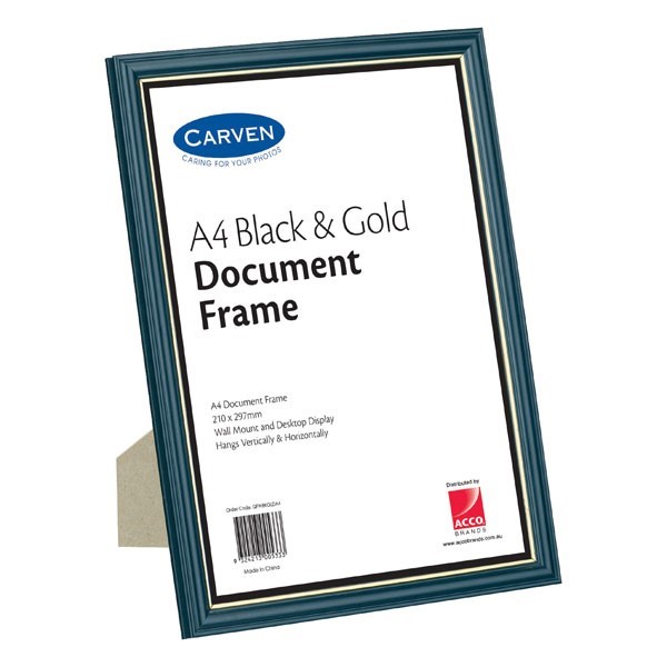 Carven QFWBKGLDA4 Document Frame A4 Black & Gold