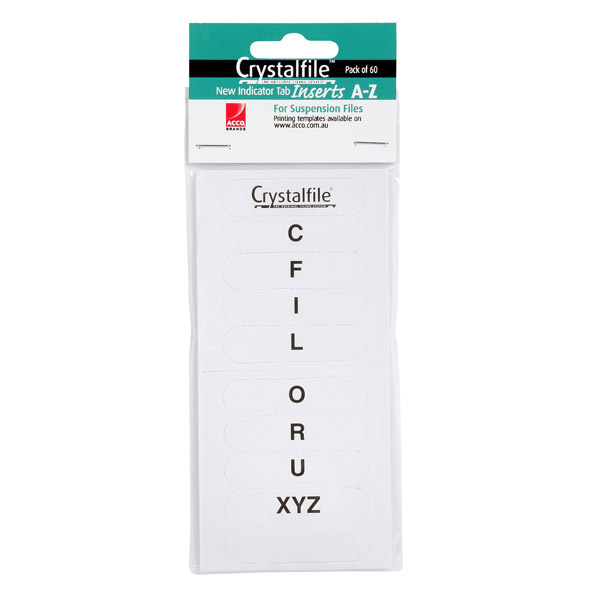 Crystalfile 111540 Inserts A-Z Rectangle White Pack 52