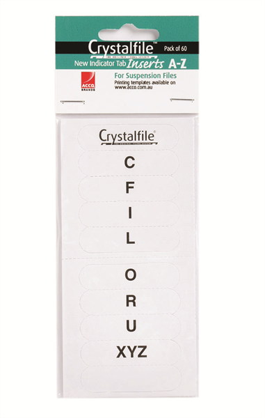 Crystalfile 111540C Inserts A-Z Rounded Corners White Pack 60