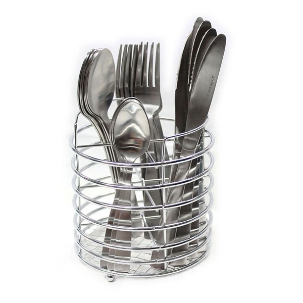 Cutlery Set Stainless Steel With Chrome Wire Caddy
