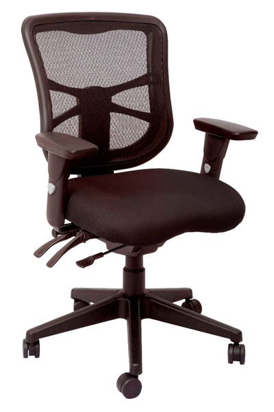 Dam Mesh Back 3 Lever Chair with Seat Slider Ratchet Back in Black Fabric & Black Base with Arms