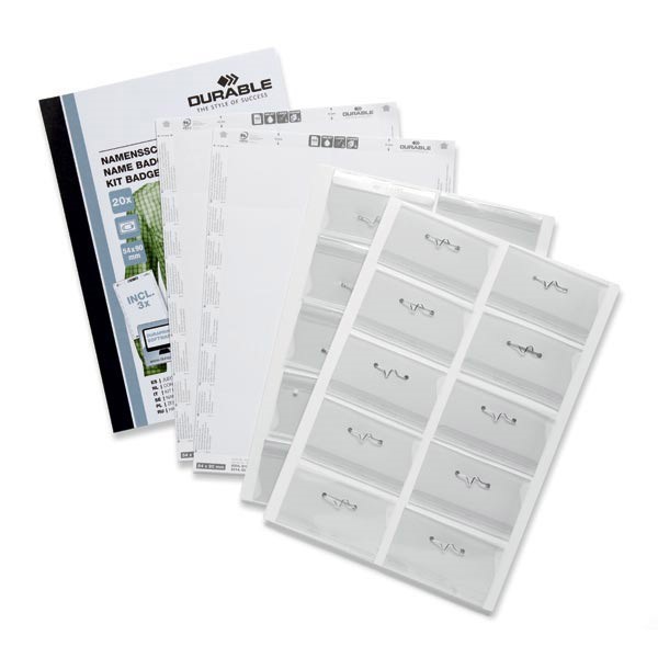 Durable 1869700 Name Badge Pin and Inserts 90 x 54mm Pack 20