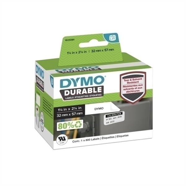 Dymo Label Writer Durable Multi Purpose Labels 57mm x 32mm feature industrial-strength adhesive and a rugged coating that resists peeling and abrasion caused by moisture and solvents