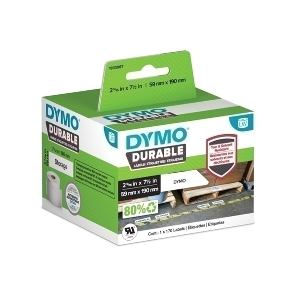 Dymo LabelWriter Durable Multi Purpose Labels 59mm x 190mm feature industrial-strength adhesive and a rugged coating that resists peeling and abrasion caused by moisture and solvents