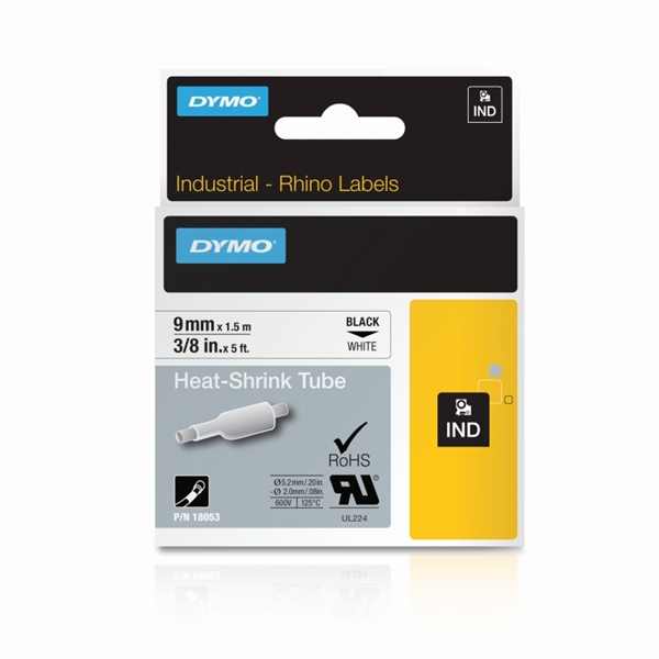 Dymo Rhino 18053 Industrial Heat Shrink 9mm Black on White