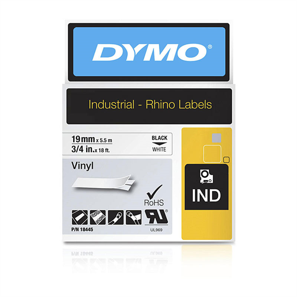Dymo Rhino 18445 Vinyl Tape 19mm x 5.5m Black On White