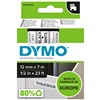 - Designed to take the hassle out of home and office organization, your DYMO D1 labelling tape is 1/2-inch (12mm) wide x 23-feet (7m) long with black print on white tape