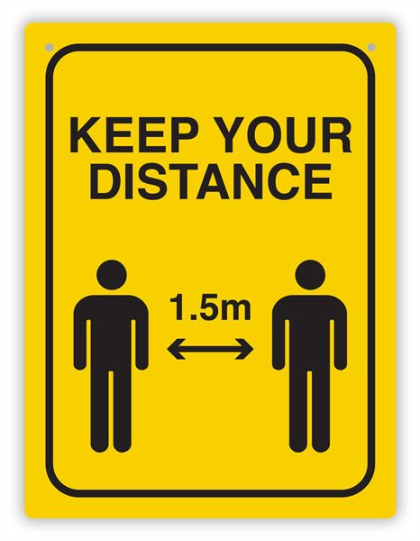 Keep Your Distance 1.5m Wall Sign 255mm x 300mm Black and Yellow