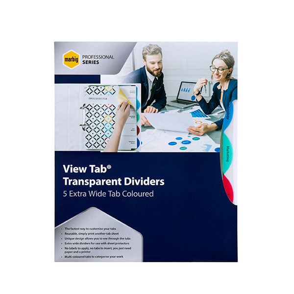 Marbig 37845 Professional Dividers 5 View Tab A4 PP Extra Wide Multi-Coloured