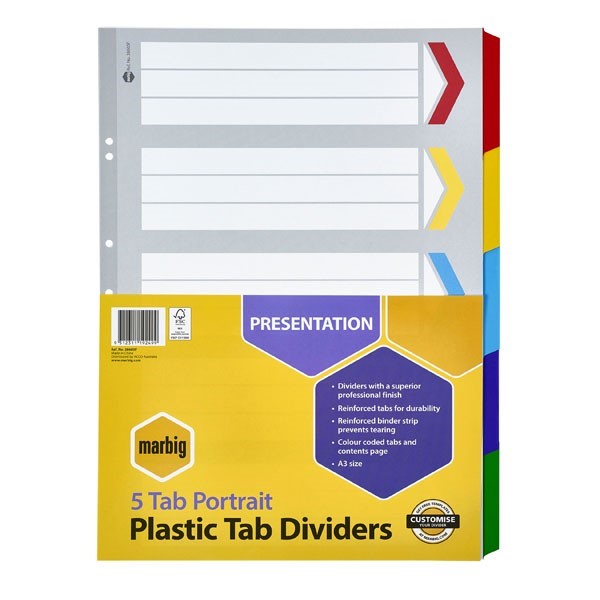 Marbig 38605F Dividers 5 Tab A3 Reinforced Portrait Multi-Coloured