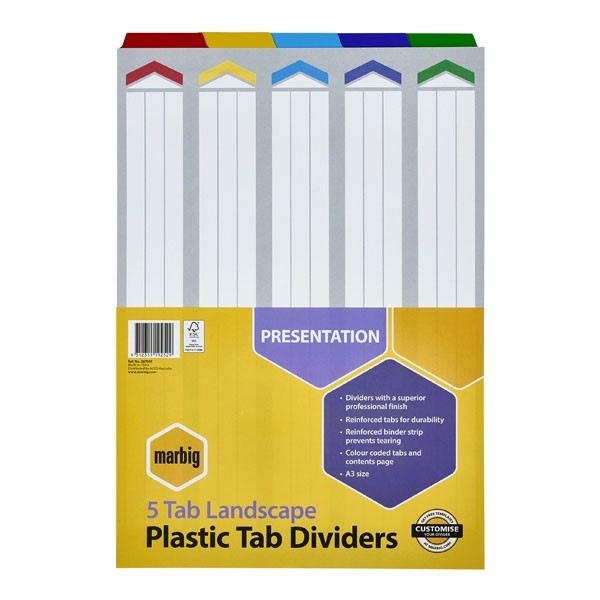 Marbig 38705F Dividers 5 Tab A3 Reinforced Landscape Multi-Coloured