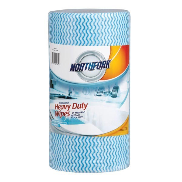 Northfork 631253641 Heavy Duty Antibacterial Wipes Perforated 45m Roll 90 sheets Blue