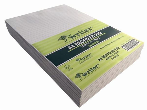Office Note Pad Recycled A4 Ruled 50 Leaf White Pack 10/3006