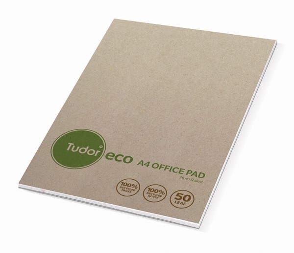 Tudor ECO office pads are manufactured with 100% recycled 60gsm paper as well as 100% recycled kraft paper cover and stiff backing board