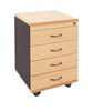 Pedestal Mobile 4 x Box Drawers Lockable Beech Ironstone