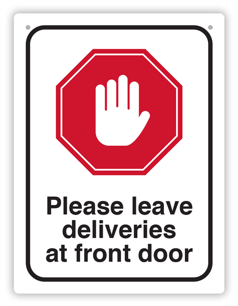 Please Leave Deliveries at Front Door Wall Sign 255mm x 300mm White Black and Red