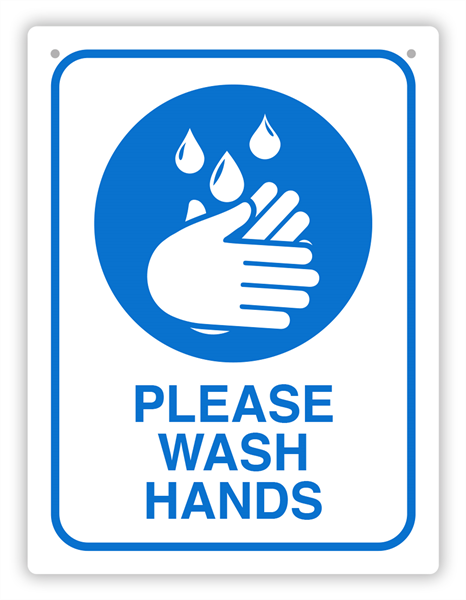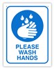 Please Wash Hands Wall Sign 255mm x 300mm White and Blue