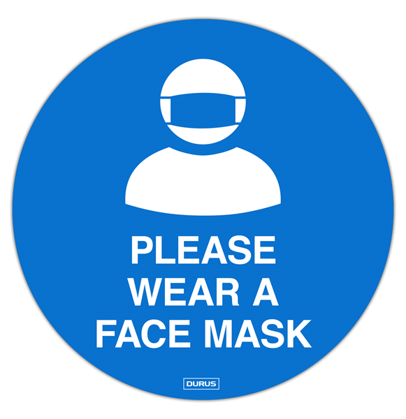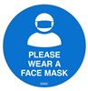 Please Wear a Face Mask Adhesive Floor Stickers 250mm Diameter Blue and White