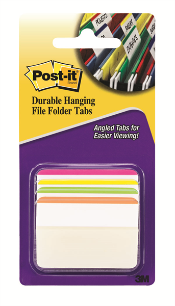 Post It Durable Tabs 686A-1BB Angeled Hanging File 4 Assorted Fluro Colours