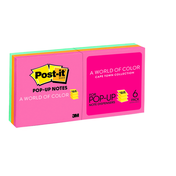Post It Notes R330 AN Pop Up 76 x 76mm Capetown Assorted Pack 6