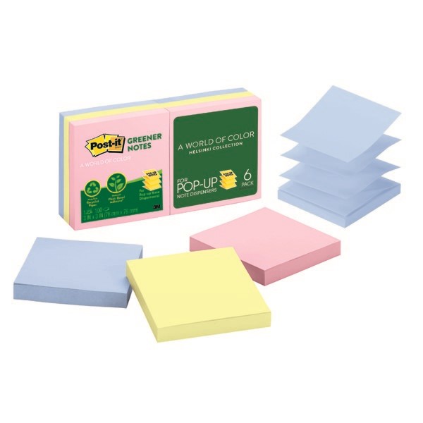 Post It Notes R330 RP 6AP Pop Up 76 x 76mm Greener Helsinki Assorted Pack 6