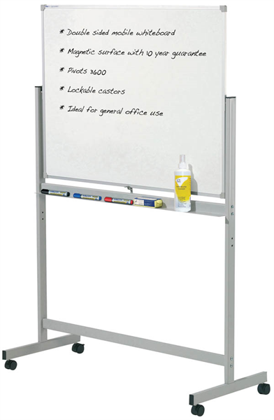 Double sided magnetic whiteboard pivots 360 degrees