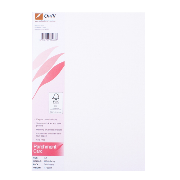 Quill 06080 Parchment Board 176gsm A4 White Pack 50